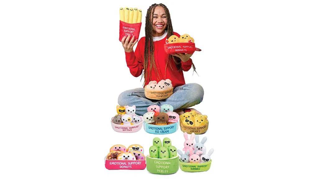 这些俏皮可爱的毛绒玩具设计能为各个年龄段的人带来慰藉与欢笑。每一套都包含五只毛绒玩具,每只都有着不同的表情,而且主题多样,比如有泡菜、薯条、甜甜圈、冰淇淋、小猫等等。